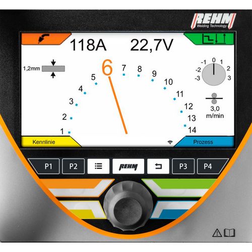• 7" large color display with Sirius user interface: Two different operating modes can be selected, operation like stepless devices (-> All welding parameters and settings at a glance) or operation like step-switched devices (-> step setting from the torch )