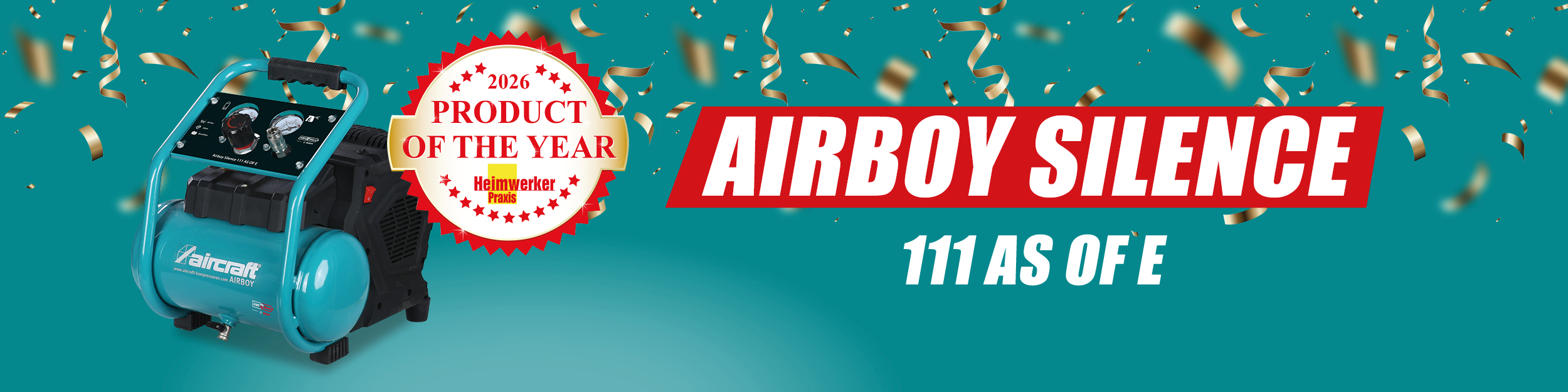 The mobile, powerful, and exceptionally quiet AIRBOY SILENCE 111 AS OF E- compressor was voted "Product of the Year 2026" in the cordless power tool category by readers of Heimwerker Praxis magazine. This award recognizes the innovative power, performance, and user-friendliness of the device.
